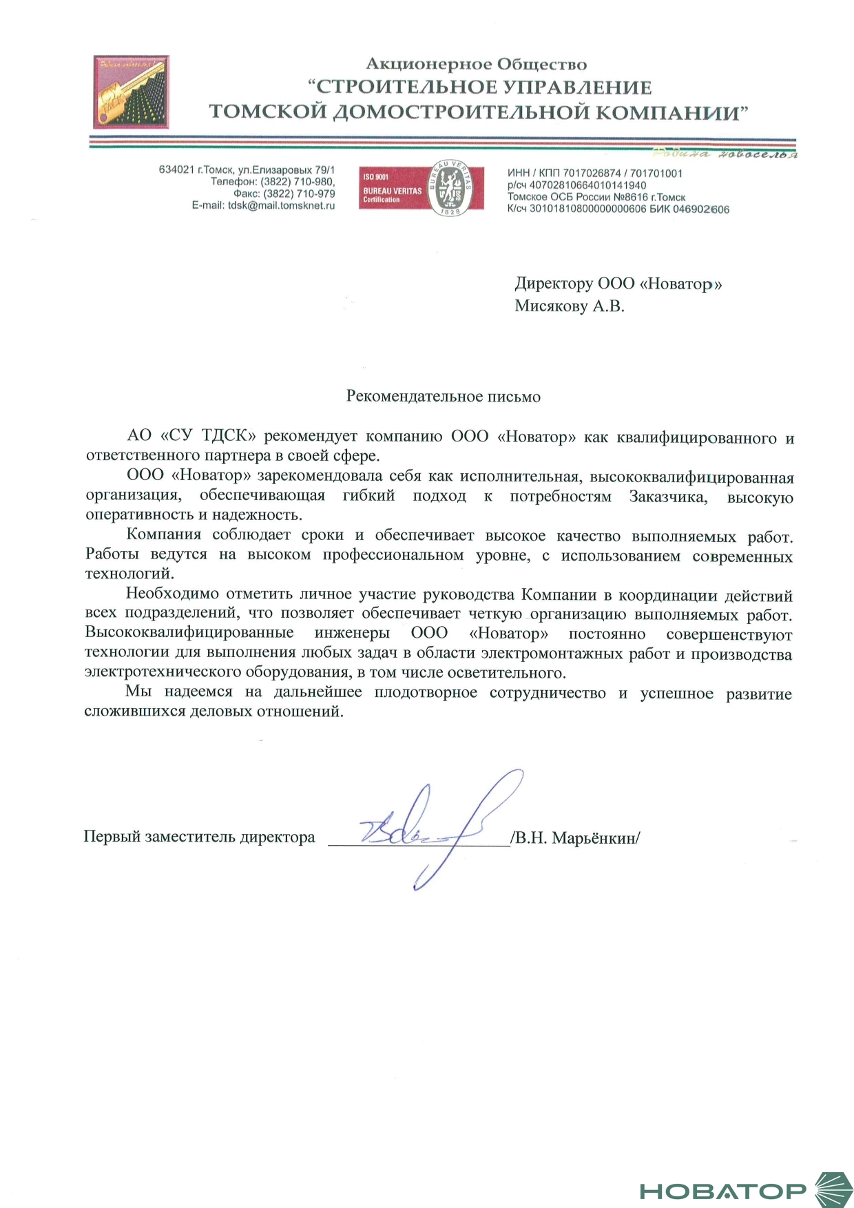 В ООО «Новатор» мы ценим доверие каждого заказчика и стремимся к долгосрочному сотрудничеству. На этой странице собраны реальные отзывы партнеров и клиентов, которые уже воспользовались нашими услугами.